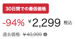 例えば、とある商品の価格近くの「タイムセール」「30日間での最低価格」表示の値引き率に注目してください。