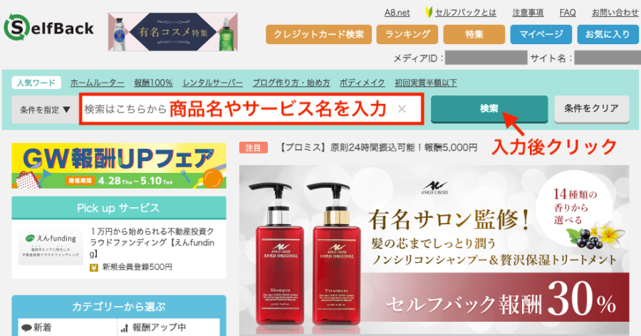 - A8.net:セルフバック