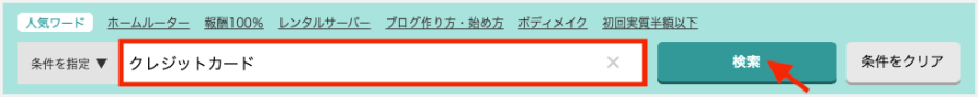 ④ 例えば「クレジットカード」と入力して検索した場合