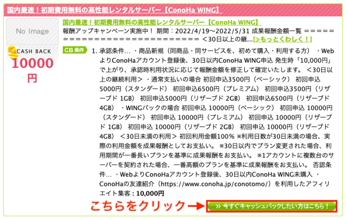 「新規・初めて購入」「○日以内に購入」などの条件があり、それを満たさないと成果報酬を受け取れないので、事前にしっかりと確認をしてから申し込みをするようにしましょう。