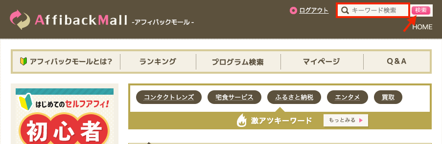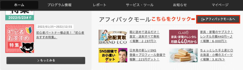 アクセストレードは、セルフバックを「アフィバック」と称し、「アフィバックモール」という専用ページで利用することができます。