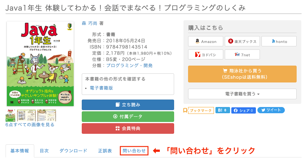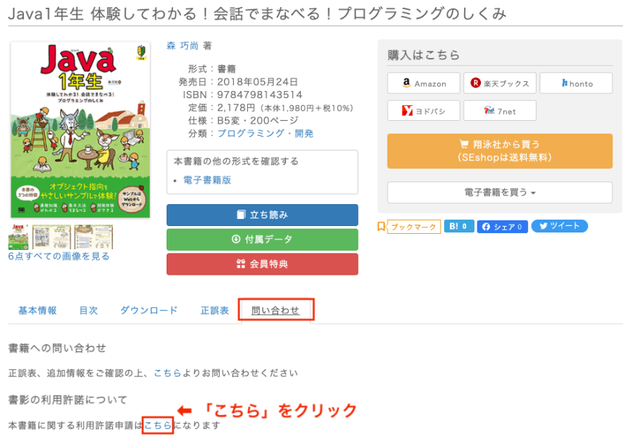 検索したい本にアクセスし、「問い合わせ」をクリック