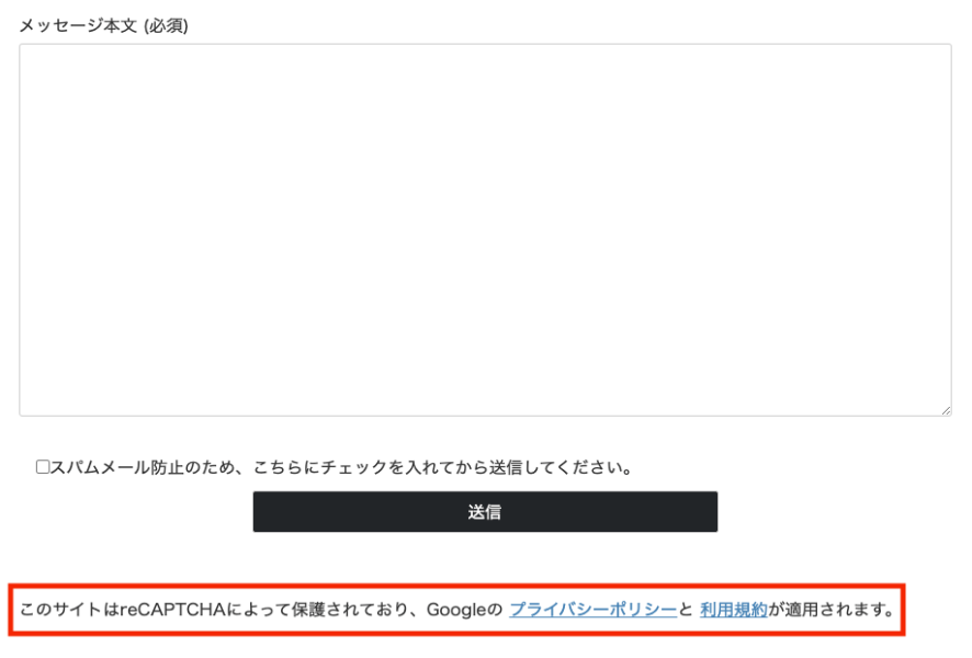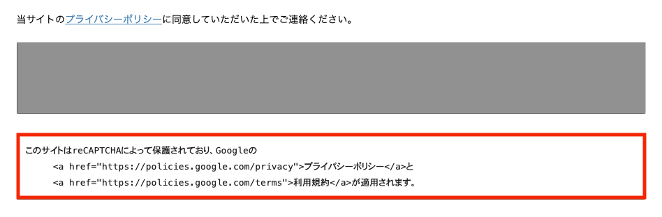 ▶︎ 参考までに「お問い合わせ」フォームに reCAPTCHA の文言を掲載してみます。