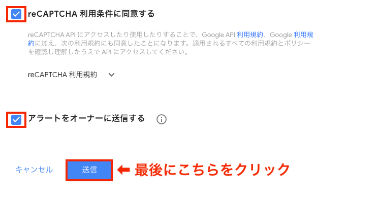 ③ 次の2箇所にチェックを入れ、最後に「送信」をクリック