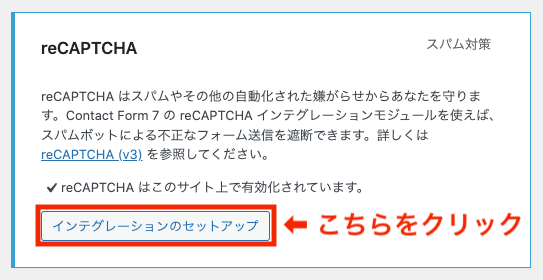 ② いくつかの項目のうち、reCAPTCHA の「インテグレーションのセットアップ」をクリック