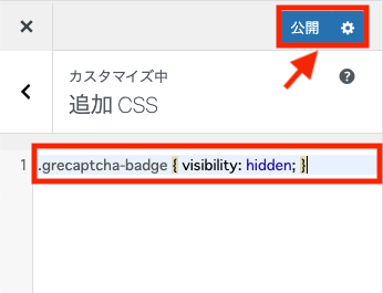 実際にこの CSSコードを「追加CSS」にコードを貼り付けて「公開」をクリックします。