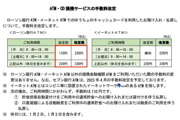 【番外】セブン、ローソン銀行ATMにおけるゆうちょ銀行カードによる全時間帯有料化