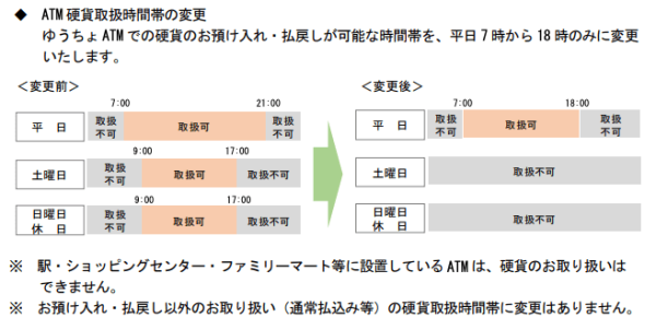 【番外】ATM硬貨預払料金の新設 & 硬貨取扱時間帯の変更