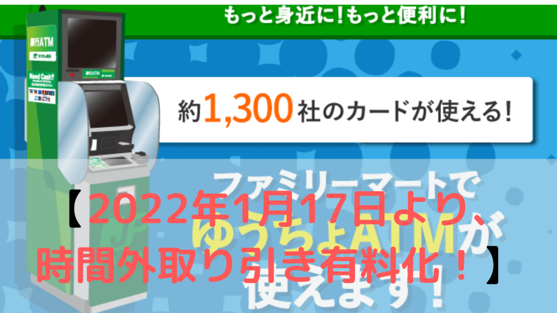 2022年1月17日のゆうちょ銀行の手数料改変に伴い、以前まで時間帯関係なく手数料無料だったファミリーマートのゆうちょATMの手数料が変わりました。