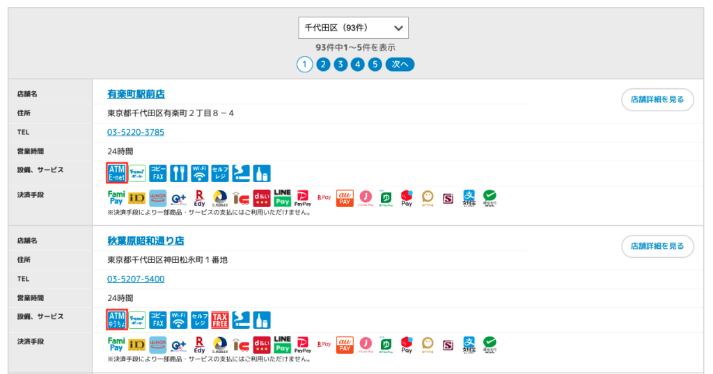 イーネットATMは先にご紹介したとおりですね。詳細は次のようになります。
