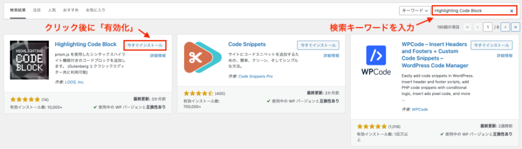 - 「WordPress シンタックスハイライト」でググると、上位に挙がっている。