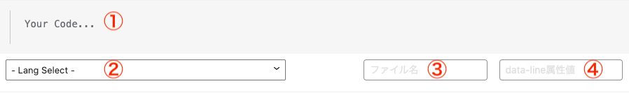 - data-line 属性値: ハイライト表示させたい行を指定できます (複数行、指定したい場合はカンマ「,」 で区切る)