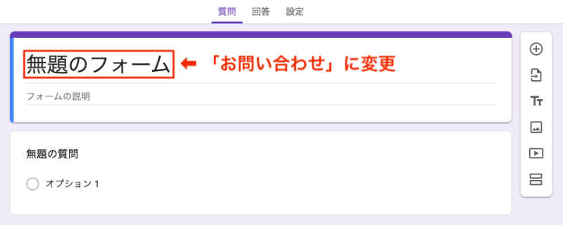次は、Google フォームでお問い合わせフォームを作成していきます。