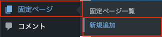 タグをコピーした後、WordPress画面を開いて「固定ページ」→ 「新規追加」をクリック