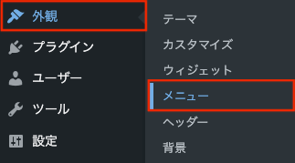 どちらとも同じ要領なので、ヘッダーメニューに設置する方法で進めていきます。フッターの場合も同様のやり方でOKです。