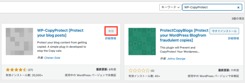 WP-CopyProtect」のインストール